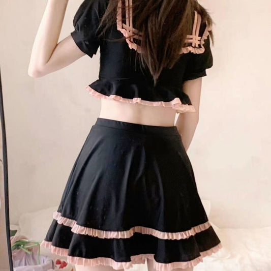 日系校園風泳衣・高腰遮肚・修手臀