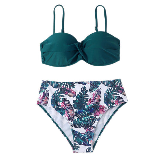 Floral拼色紐紋胸包覆泳衣
